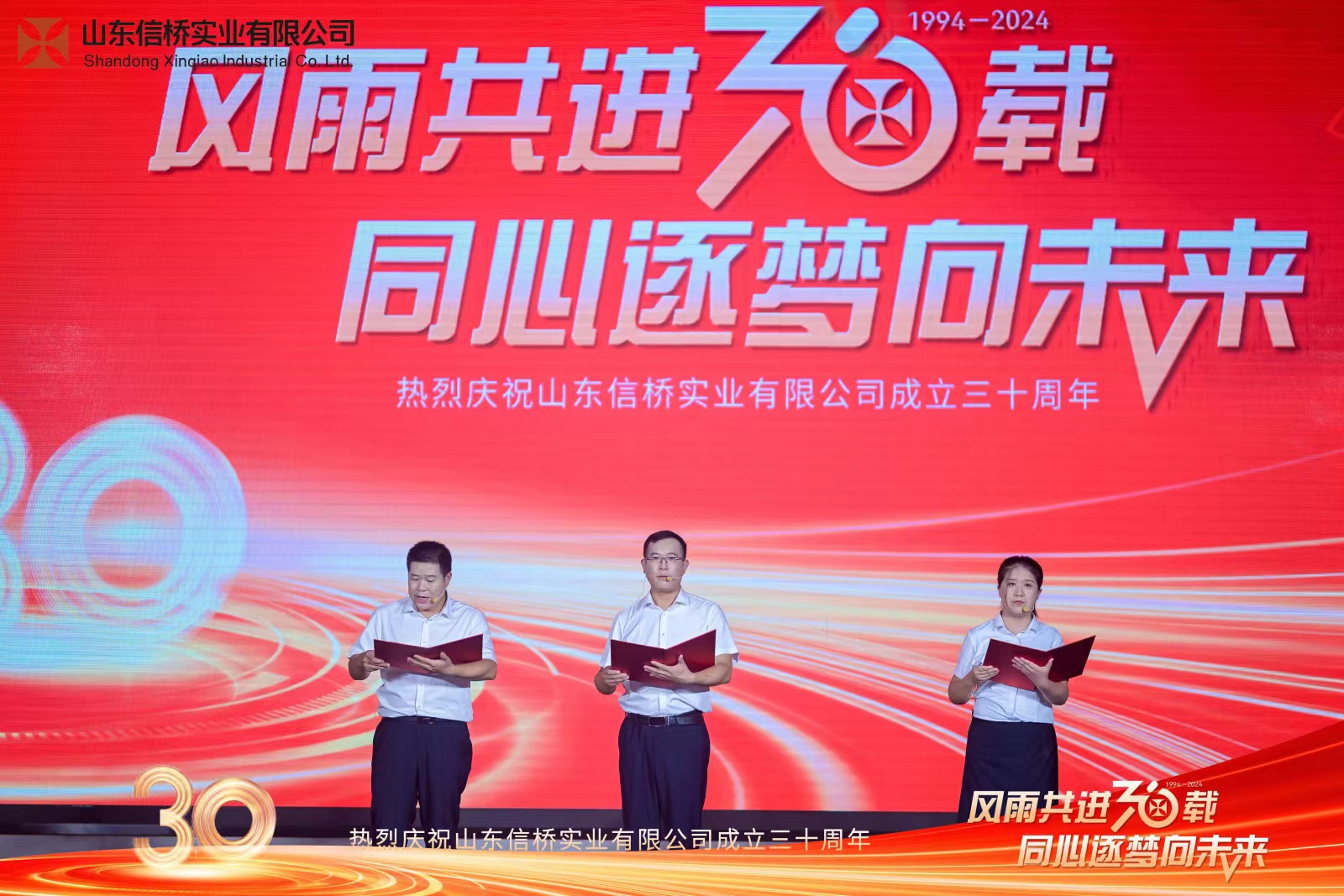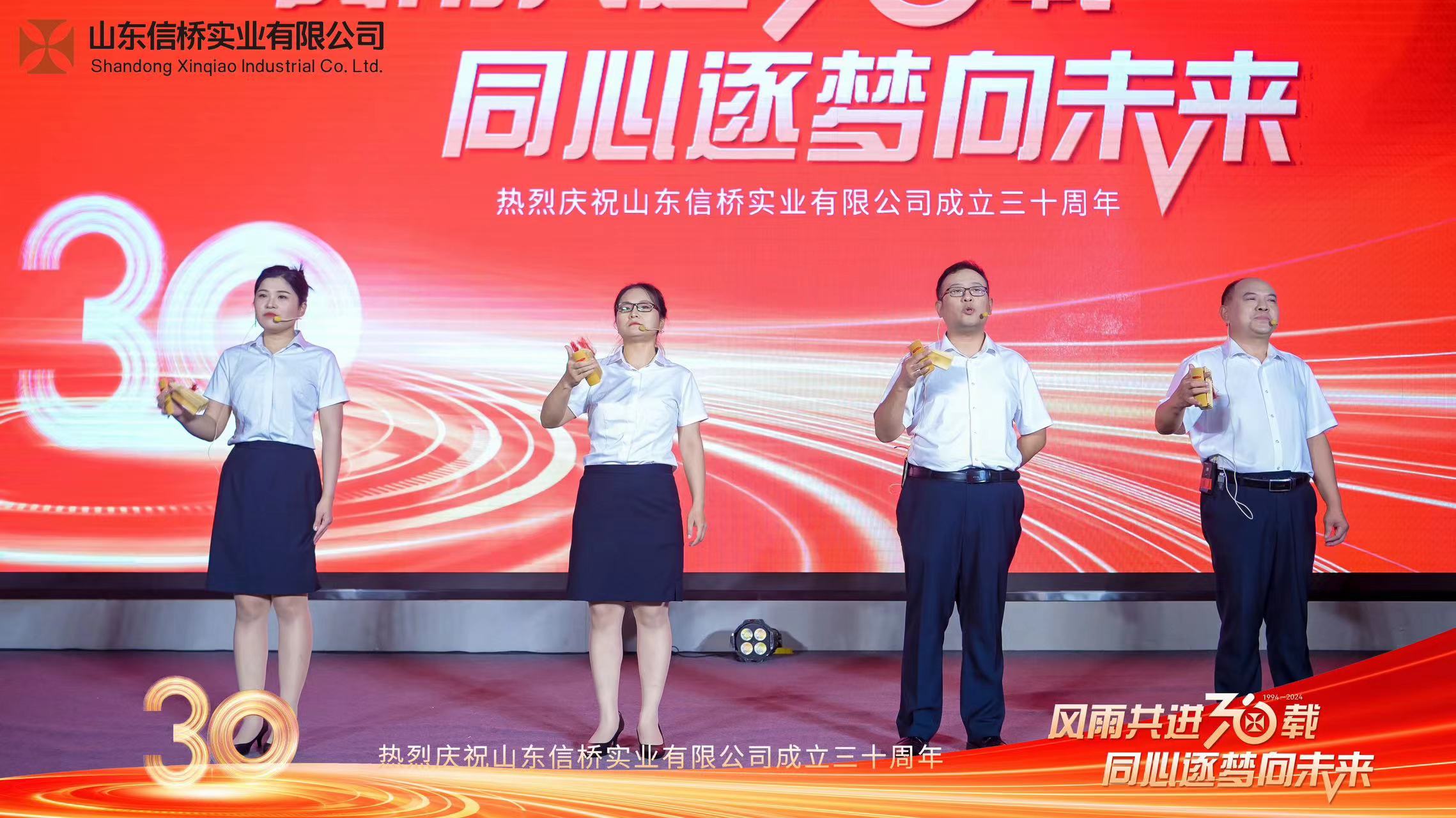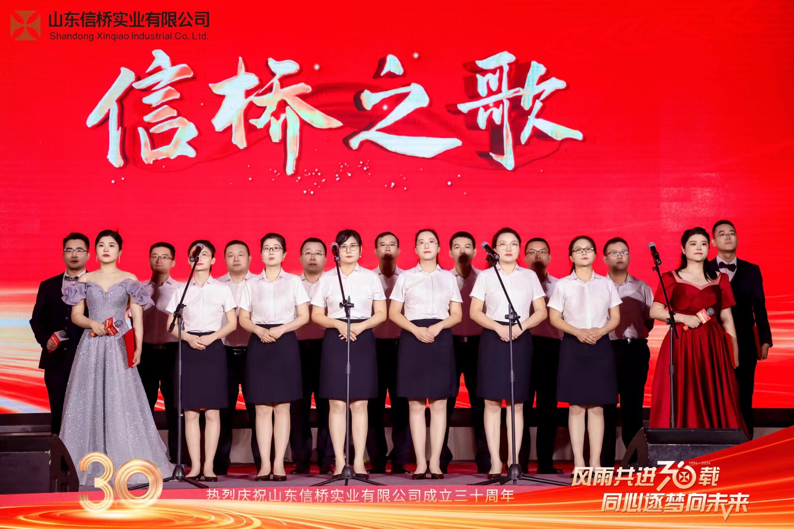 四位主持帶來詩朗誦《30而立,行穩(wěn)致遠(yuǎn)》,隨后,全體信橋員工帶來大合唱《信橋之歌》。