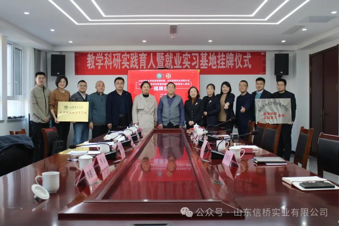 11.28日,山東農(nóng)業(yè)大學(xué)經(jīng)管學(xué)院與山東信橋?qū)崢I(yè)有限公司在信橋公司舉行了教學(xué)科研實踐育人暨就業(yè)實習(xí)基地掛牌儀式。