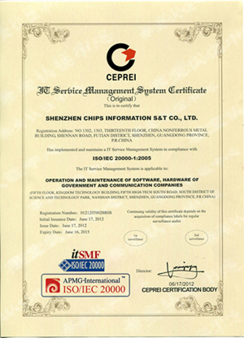 ISO是國(guó)際權(quán)威的標(biāo)準(zhǔn)化組織,ISO20000是該組織于2005年12月公布的有關(guān)IT服務(wù)管理體系的標(biāo)準(zhǔn)文件。ISO20000標(biāo)準(zhǔn)以主動(dòng)預(yù)防性方式,確保通過(guò)認(rèn)證的企業(yè)或組織能夠提供高水平的IT服務(wù)滿(mǎn)足客戶(hù)和業(yè)務(wù)需求。該資質(zhì)的獲得將顯著提升齊普生的市場(chǎng)競(jìng)爭(zhēng)力和行業(yè)影響力,并為齊普生的業(yè)務(wù)發(fā)展帶來(lái)更多的機(jī)遇。作為國(guó)家級(jí)國(guó)家級(jí)高新技術(shù)企業(yè)和專(zhuān)業(yè)的IT服務(wù)提供商,獲得ISO20000認(rèn)證資質(zhì)是齊普生發(fā)展的一座里程碑,標(biāo)志著齊普生已經(jīng)進(jìn)入世界具有最高標(biāo)準(zhǔn)IT服務(wù)管理水平的企業(yè)行列。
